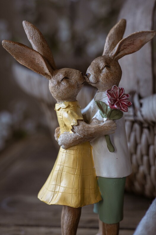 Sött kaninpar som kramas och håller en blomma. Perfekt som dekoration i fönstret eller på soffbordet. | Från A Lot Decoration