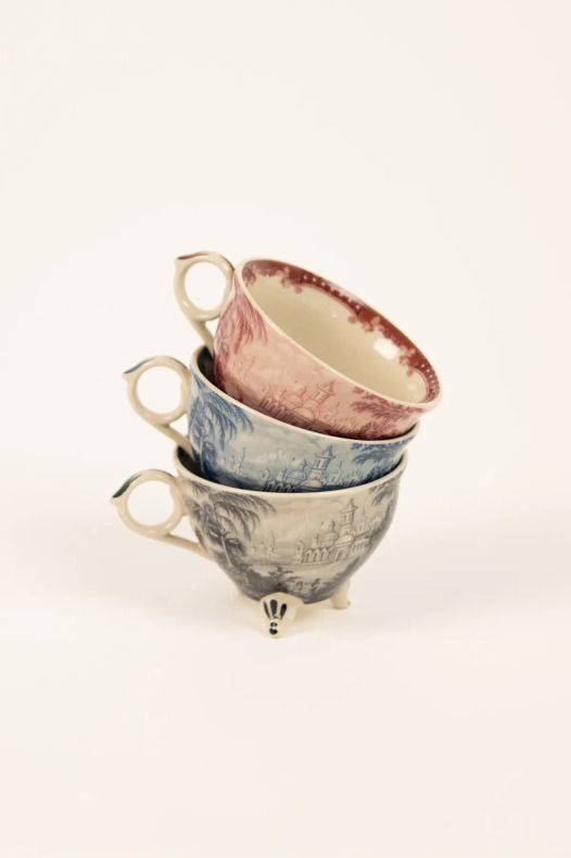 Vacker kopp på fot med ett unikt handmålat mönster med inspiration från 1700-talets Frankrike. Estelle förenar historia och elegans i ditt hem. | Från Olsson & Jensen.