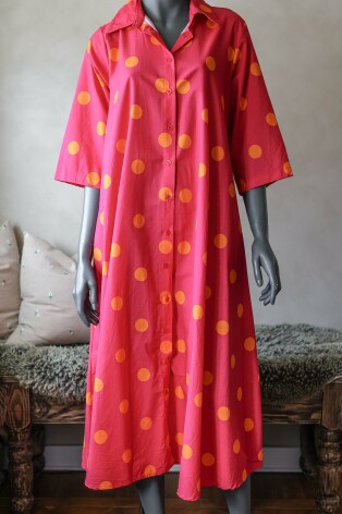 Fin helknäppt klänning med krage och klassiskt prickigt mönster.