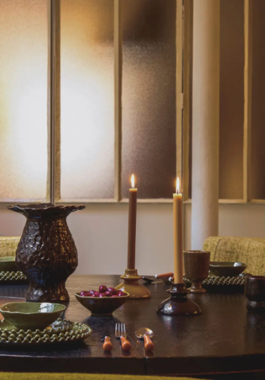Snygg chunky ljusstake inspirerad av 70-talets retrofärger, glaserad med reaktiv glasyr som skapar unika variationer i färg och täckning | Från Olsson & Jensen