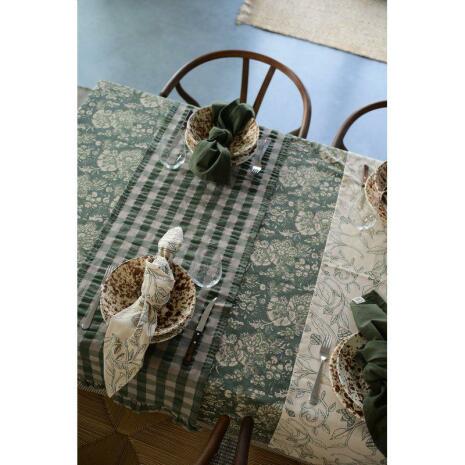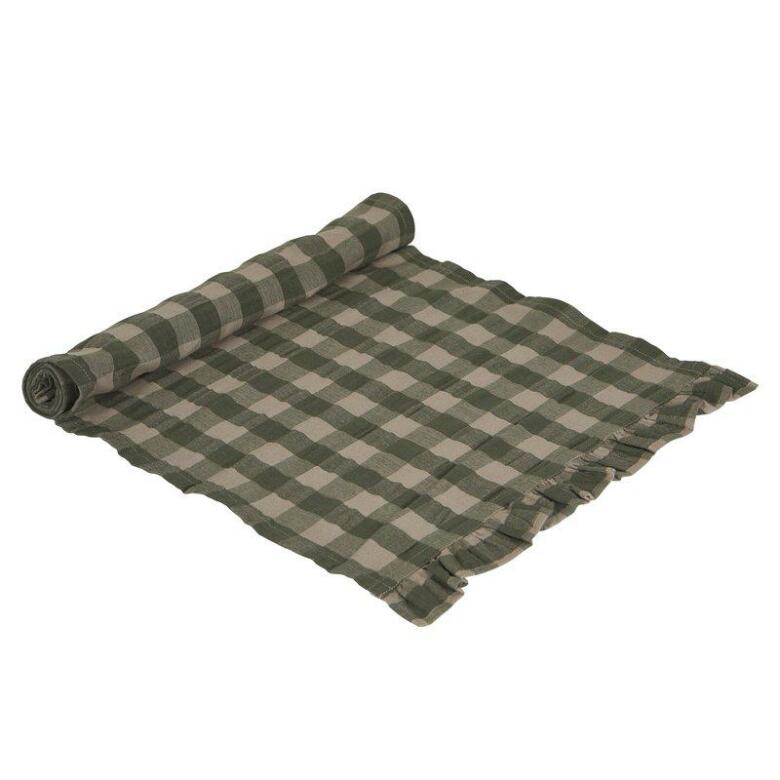 Söt bordslöpare med ett klassiskt rutigt mönster med söta volangkanter att pryda bordet med! | Från Fondaco