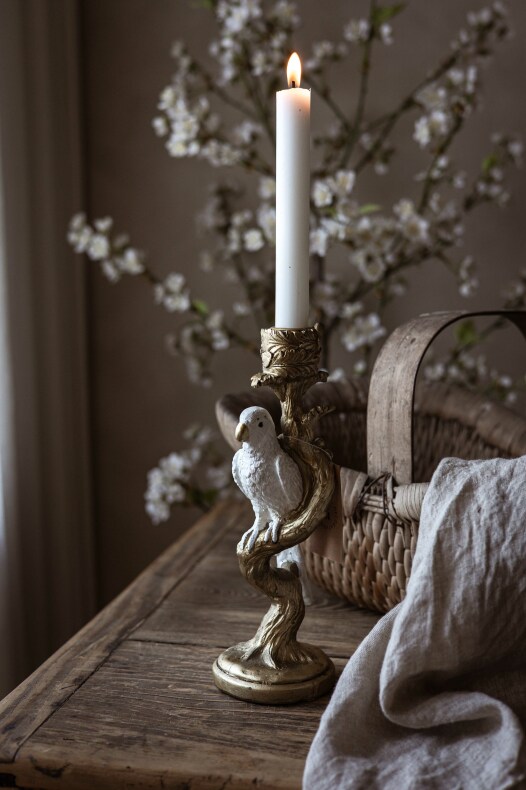 Ljusstake med en fågel på en gren. För dig som vill ha ett exotiskt och lekfullt inslag i inredningen | Från A Lot Decoration