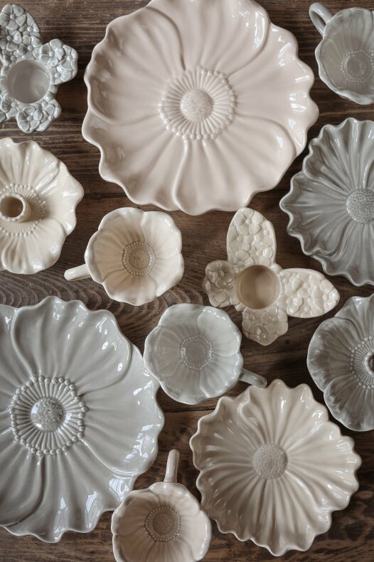 Blomstra faten är ljuvliga hantverk i blomstrande anda med detaljer som ger det där lilla extra till det dukade bordet.