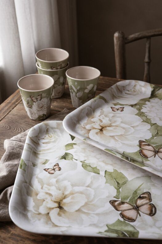 Majas Bricka Hortensia & Butterflies Grön