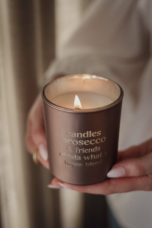 Text: Candles, Prosecco & Friends, Ohlala what a happy blend