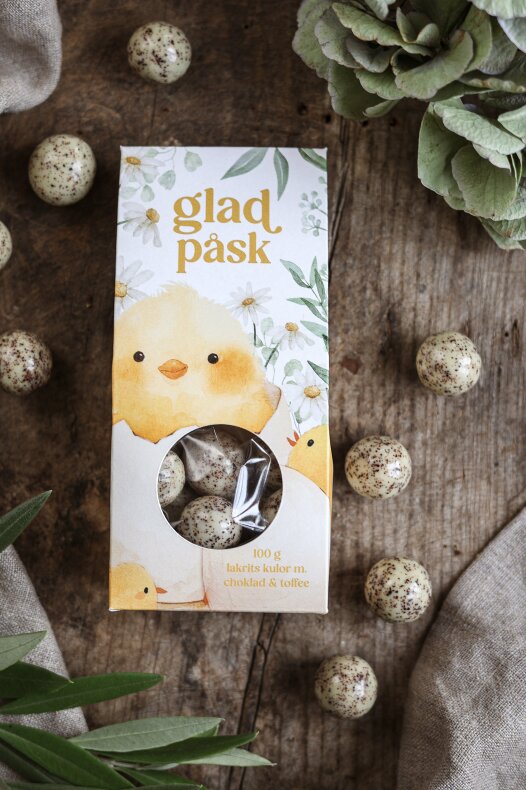 Lakrits dragerad med mjölkchoklad, vit choklad och med smak av kola