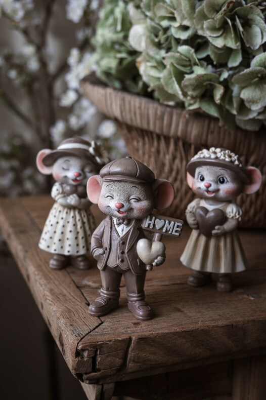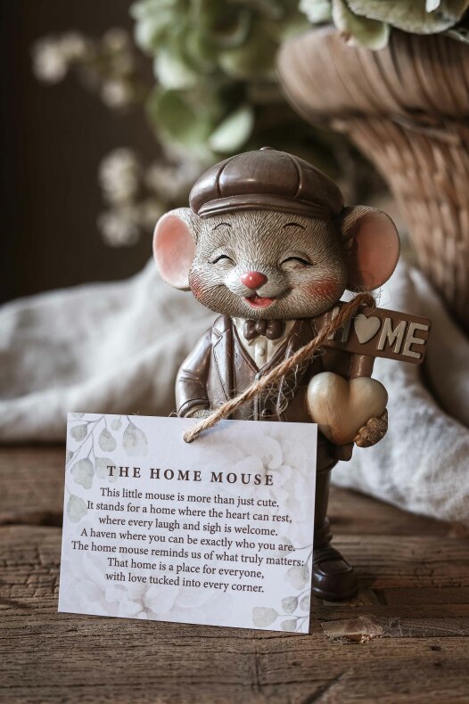 Text: Den här lilla musen är mer än bara söt. Den står för ett hem där hjärtat får vila, där varje skratt och suck får ta plats. En fristad där du får vara precis den du är. Där värmen bor i kramar, prat & mysiga stunder. Hus musen påminner oss om det viktiga: Att hemmet är en plats för alla, med kärlek i varje vrå / This little mouse is more than just cute. It stands for a home where the heart can rest, where every laugh and sigh is welcome. A haven where you can be exactly who you are. The home mouse reminds us of what truly matters: That home is a place for everyone, with love tucked into every corner.