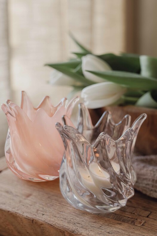 Finish Handgjord glaslykta i formation av en tulpan | soft pink