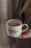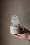 Ljuvlig mugg med organisk handgjord känsla och silkscreen text i keramiken.