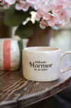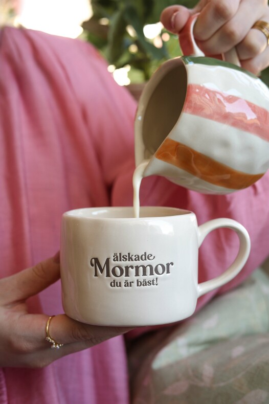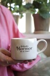 Ljuvlig mugg med organisk handgjord känsla och silkscreen text i keramiken.