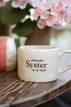 Ljuvlig mugg med organisk handgjord känsla och silkscreen text i keramiken.