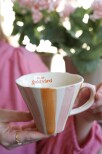 Ljuvlig mugg med handmålat mönster i glada härliga färger