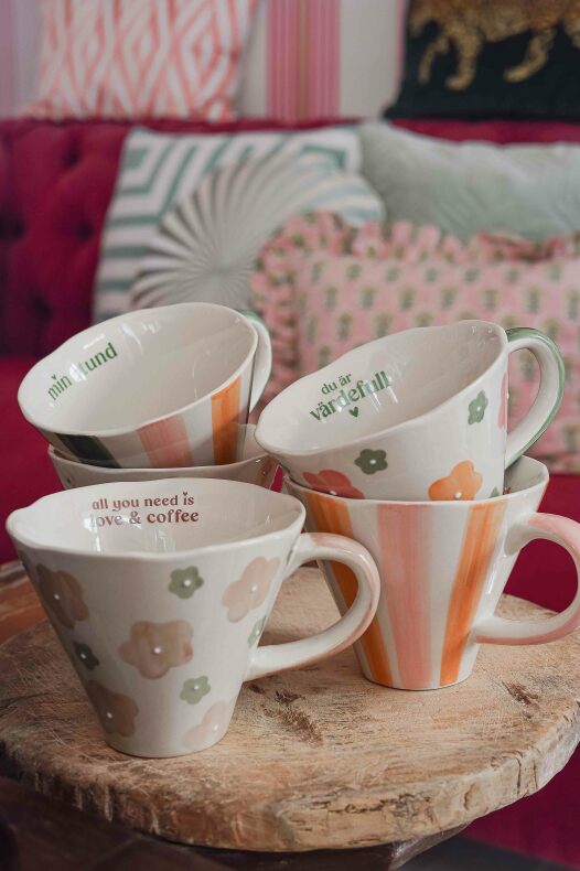 Ljuvlig mugg med handmålat mönster i glada härliga färger