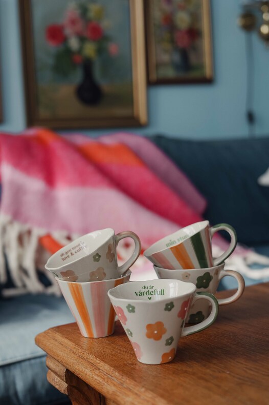 Ljuvlig mugg med handmålat mönster i glada härliga färger