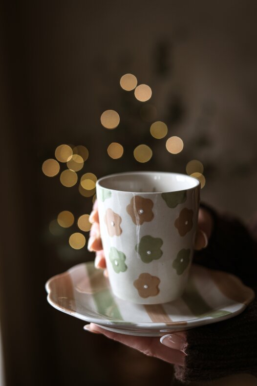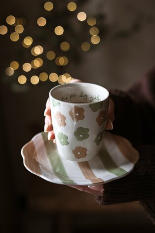 Ljuvlig mugg med handmålat mönster i glada härliga färger