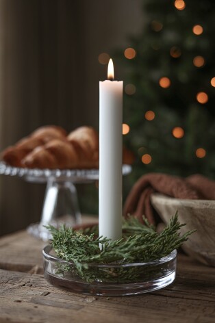 Enkel stilren ljushållare för kronljus, fin att dekorera efter säsong eller ha som den är.