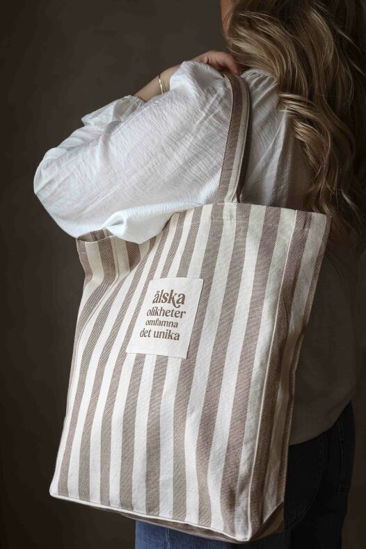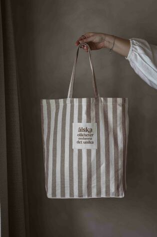 Majas tygpåsar passar perfekt i vardagen – till shopping, utflykter, jobb, strand eller som gåvopåse, samtidigt som de är en del av vårt arbete för Hjärnfonden där vi älskar olikheter och omfamnar det unika.
