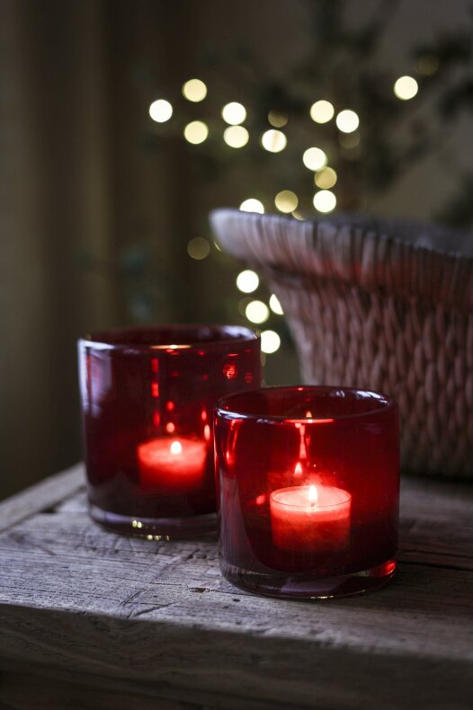 En elegant ljuslykta i en härlig röd färg. Perfekt att tända nu under vinterns mysiga kvällar | Från Olsson & Jensen
