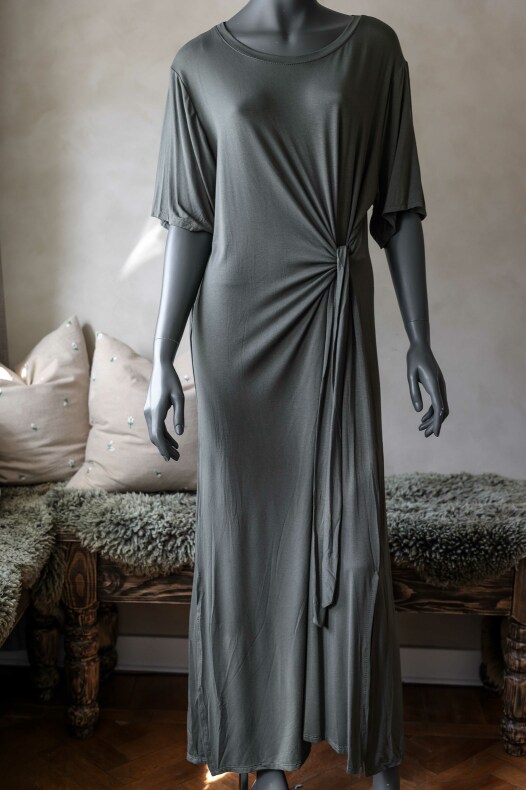 Mjuk och härlig trikåklänning med knyte i sidan.