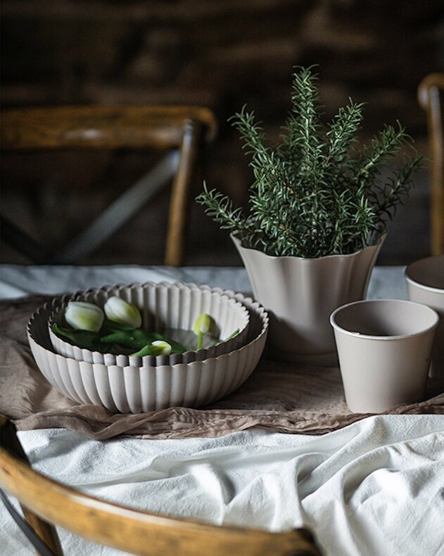 Skål med vågig kant, tillverkad i återvunnen plast. För dig som vill inreda med dekorationer, växter och ljus | Från A Lot Decoration