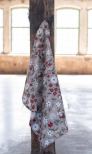 Julig kökshandduk till köket med vackert mönster i dova toner med inslag av rött | Från Fondaco