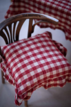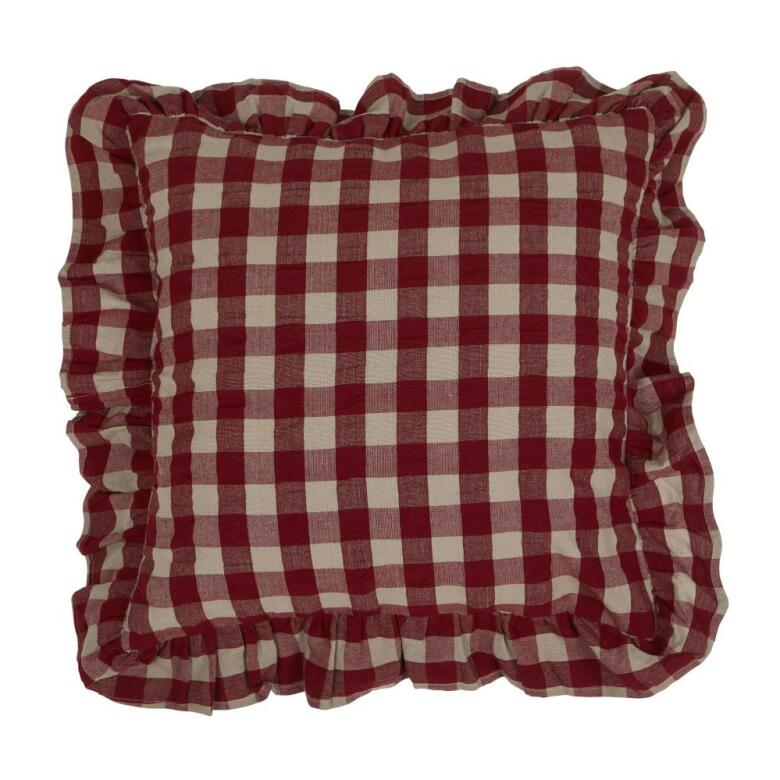 Snyggt kuddfodral med vackert rutigt mönster samt detaljfulla volangkanter runt om | Från Fondaco