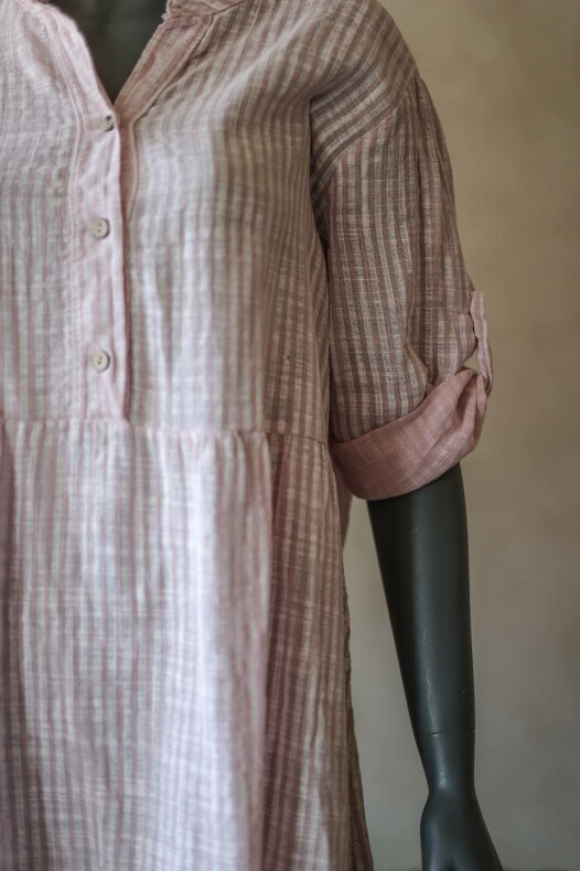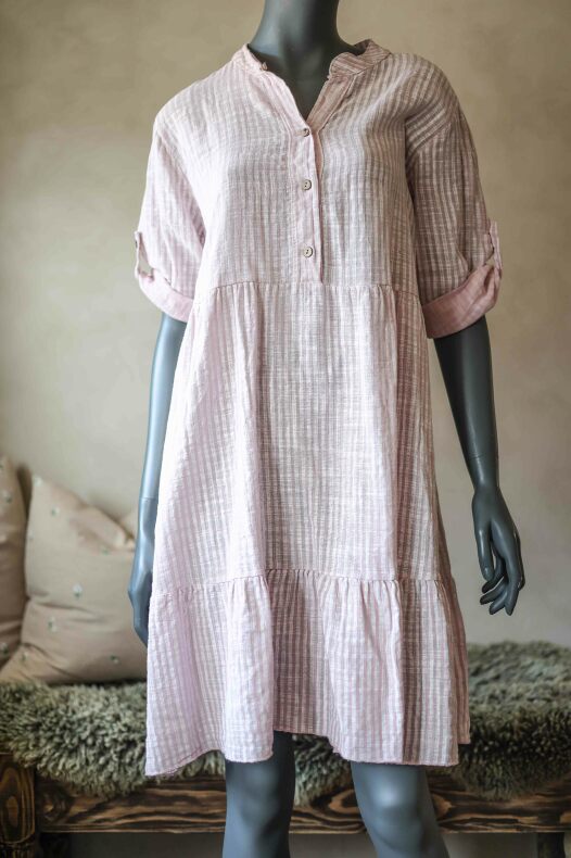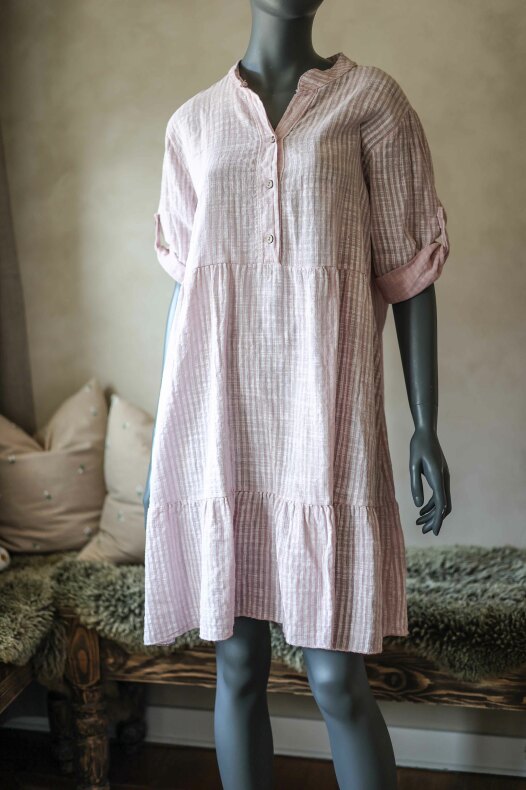 Ljuvlig klänning med volang nedtill och knappar upptill.