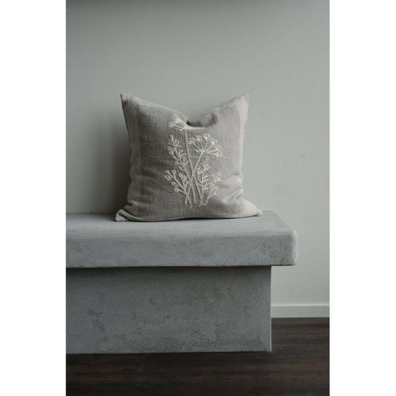 Mönstrat kuddfodral med en enfärgad botten i grövre bomull. Det broderade mönstret tillför en hantverkskänsla. Baksidan är enfärgad och gör det enkelt att matcha med andra kuddar. | Från Fondaco
