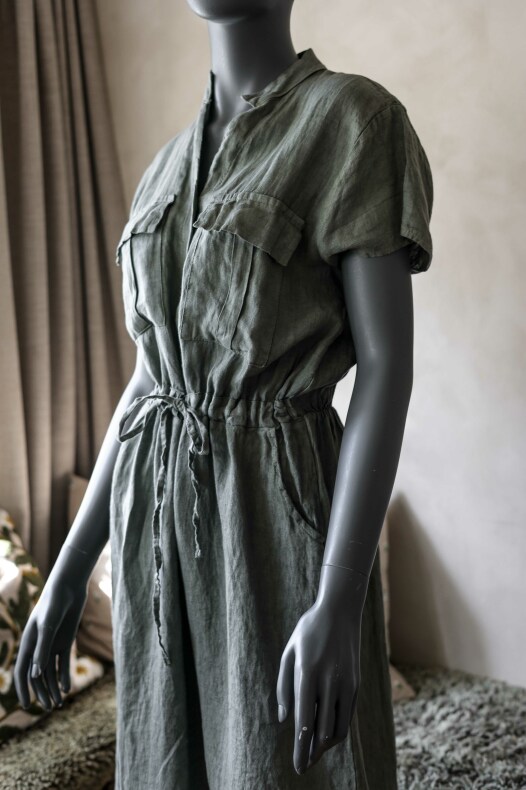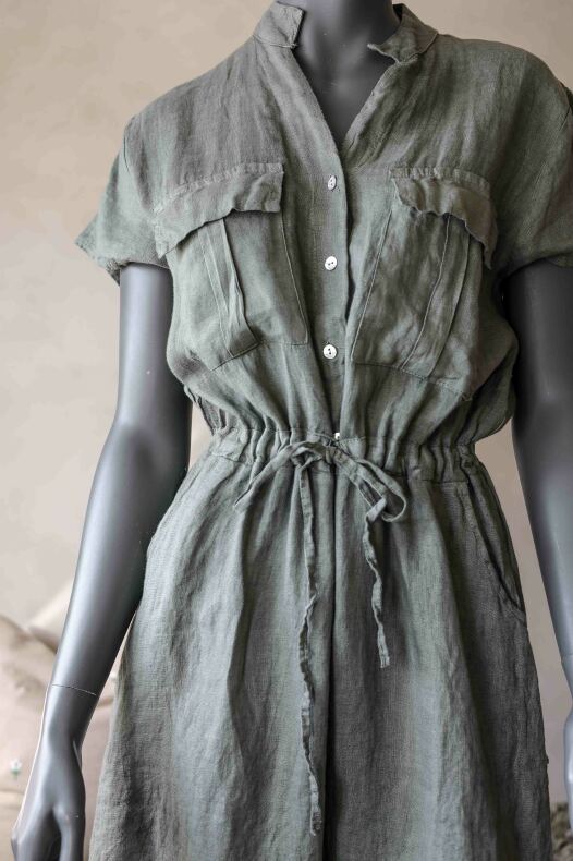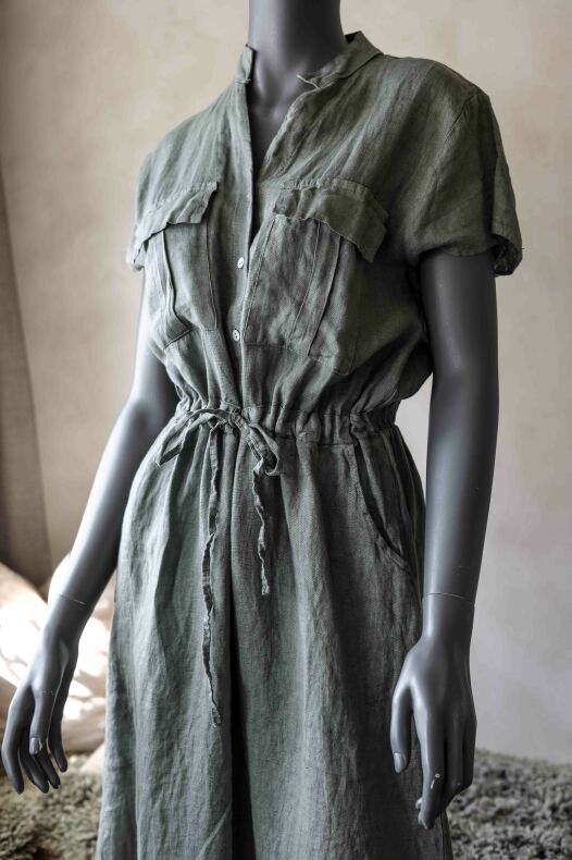 Linneklänning med fickor & dragsko.
